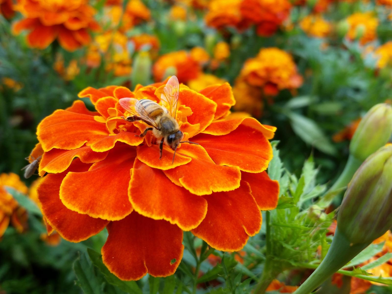Wallpaper The wasps sits on a beautiful orange flower marigold