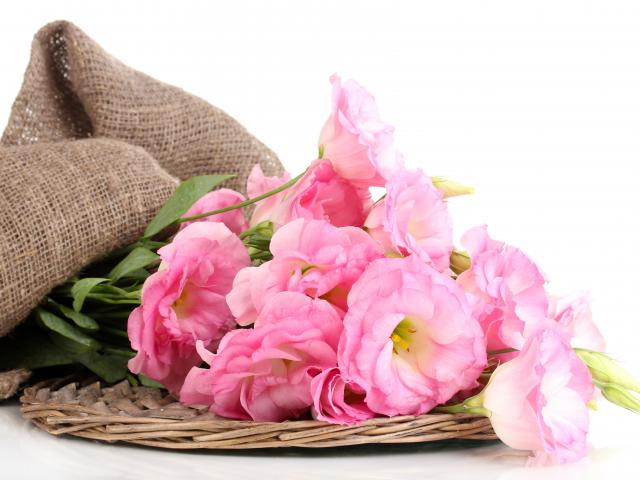 Wallpaper Pink flowers eustoma on a white background