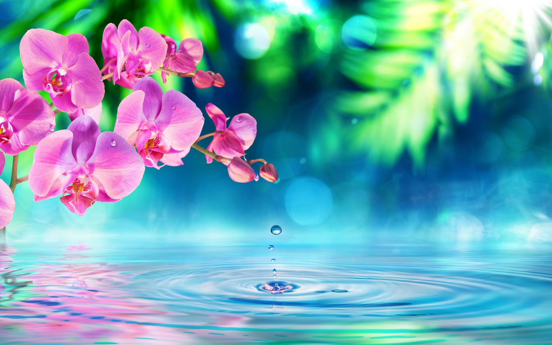 Wallpaper Pink orchid flowers on the background of water
