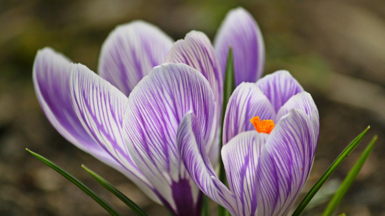 Wallpaper Beautiful little violet crocuses closeup