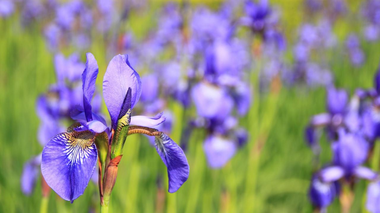 Wallpaper Beautiful violet flower iris on a flower bed