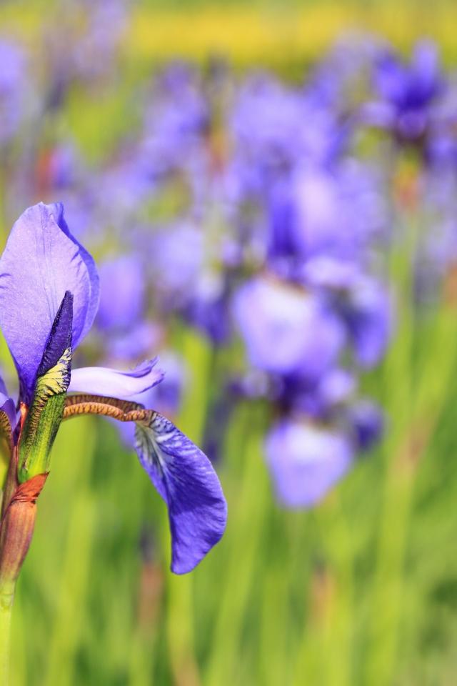 Wallpaper Beautiful violet flower iris on a flower bed