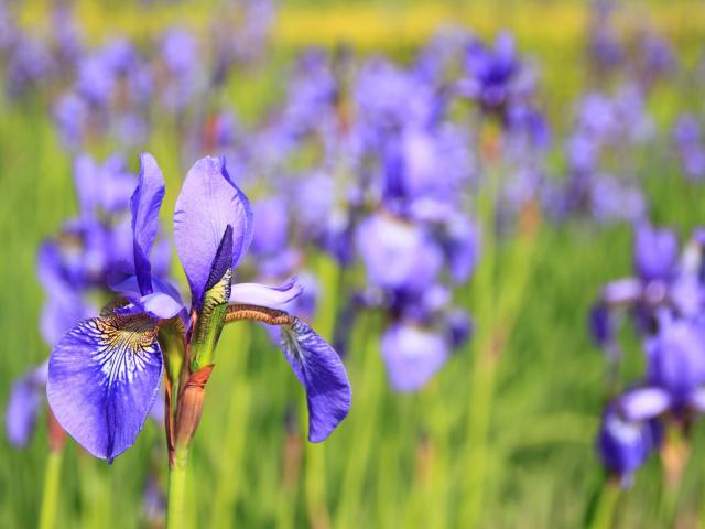 Wallpaper Beautiful violet flower iris on a flower bed