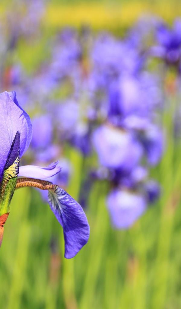 Wallpaper Beautiful violet flower iris on a flower bed