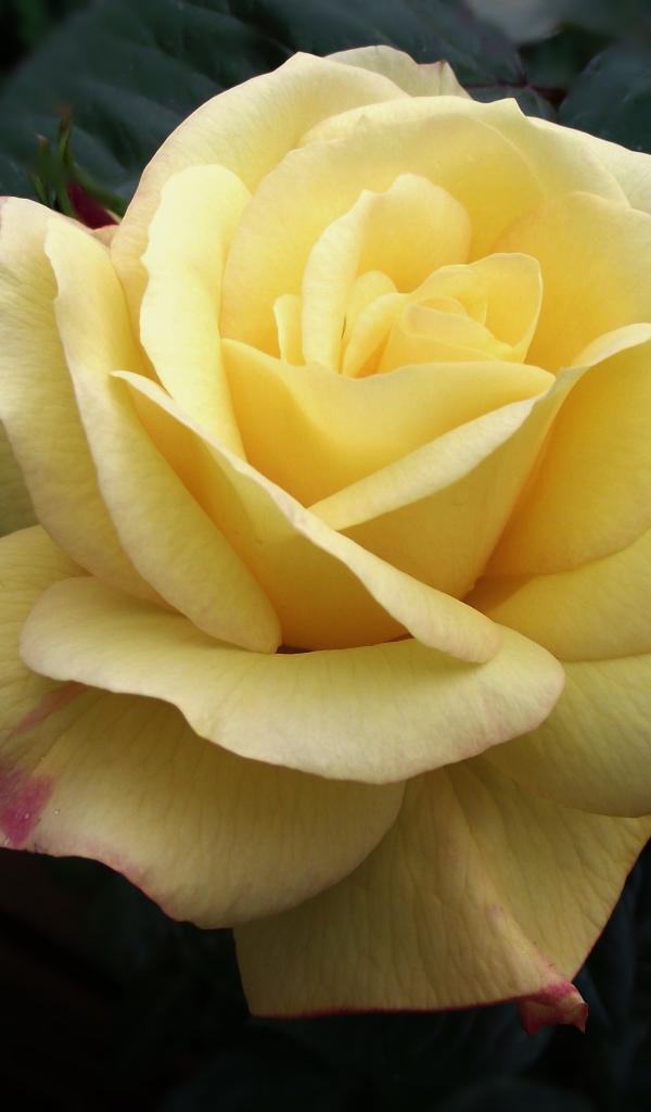 Wallpaper Delicate yellow rose with green leaves on a black background