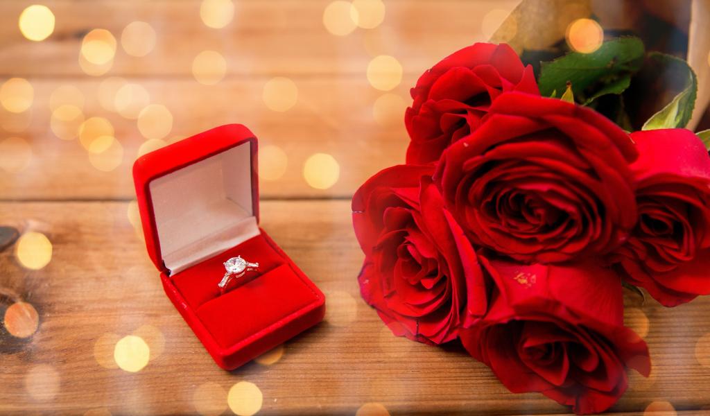 Wallpaper Beautiful bouquet of red roses and a diamond ring
