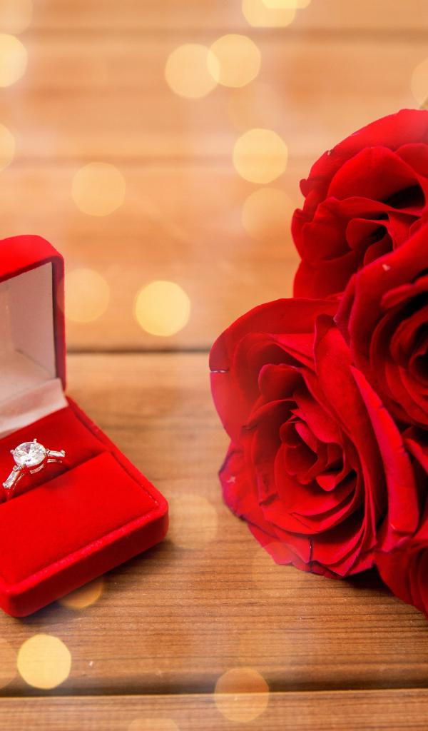 Wallpaper Beautiful bouquet of red roses and a diamond ring