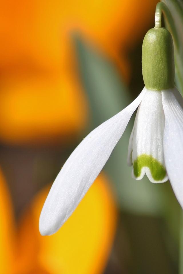 Wallpaper White spring snowdrop close-up
