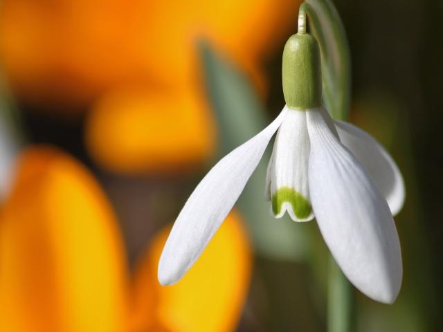 Wallpaper White spring snowdrop close-up