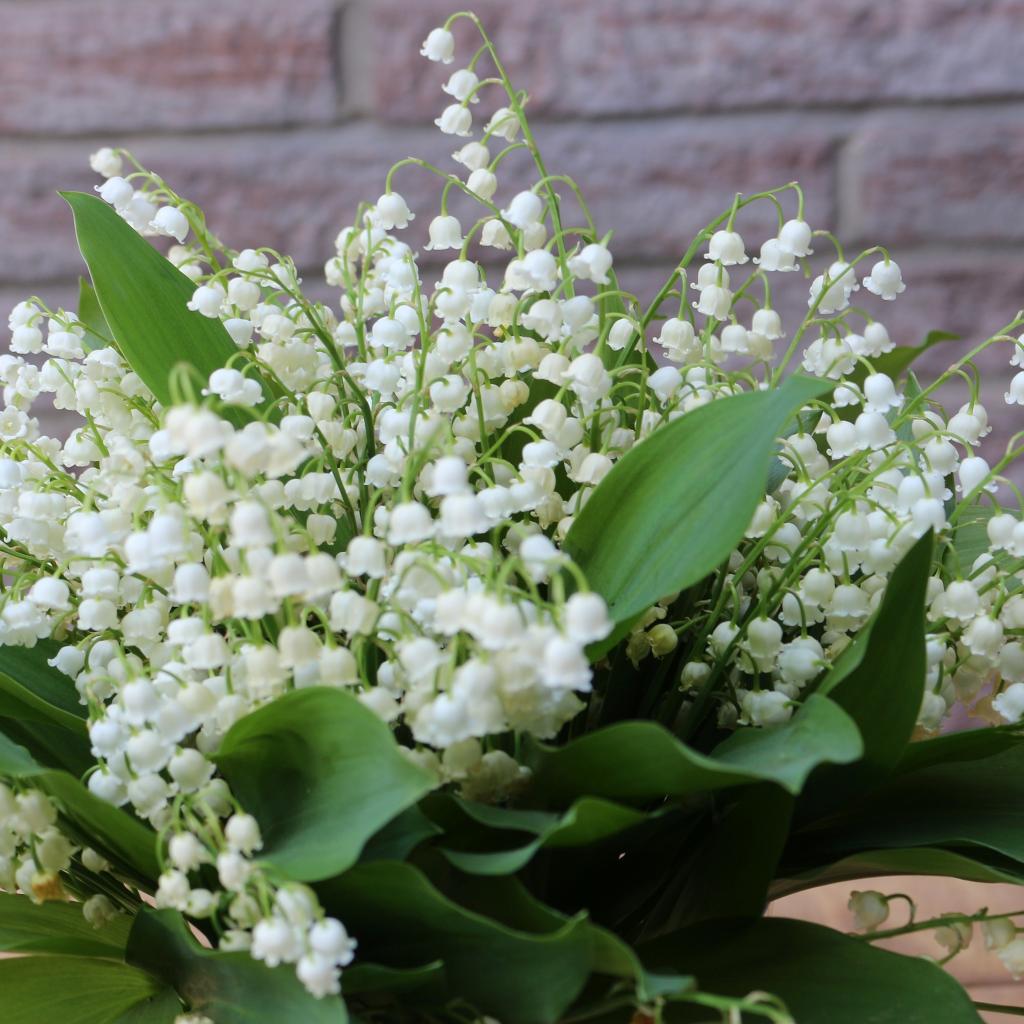 Wallpaper A bouquet of white lily of the valley with green leaves