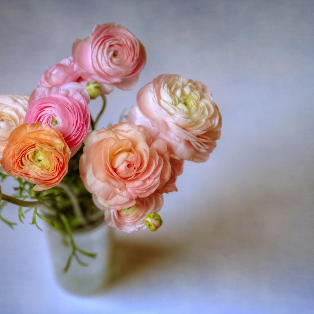Wallpaper Bouquet of buttercups in a vase on a gray background
