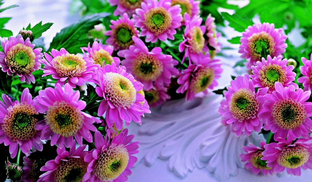 Wallpaper Pink and white chrysanthemum flowers on the table