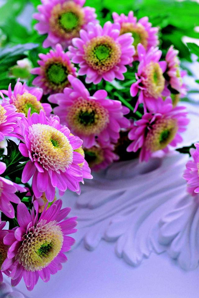 Wallpaper Pink and white chrysanthemum flowers on the table
