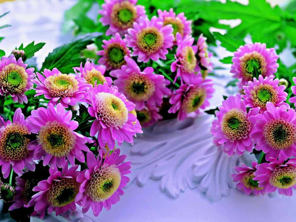 Wallpaper Pink and white chrysanthemum flowers on the table
