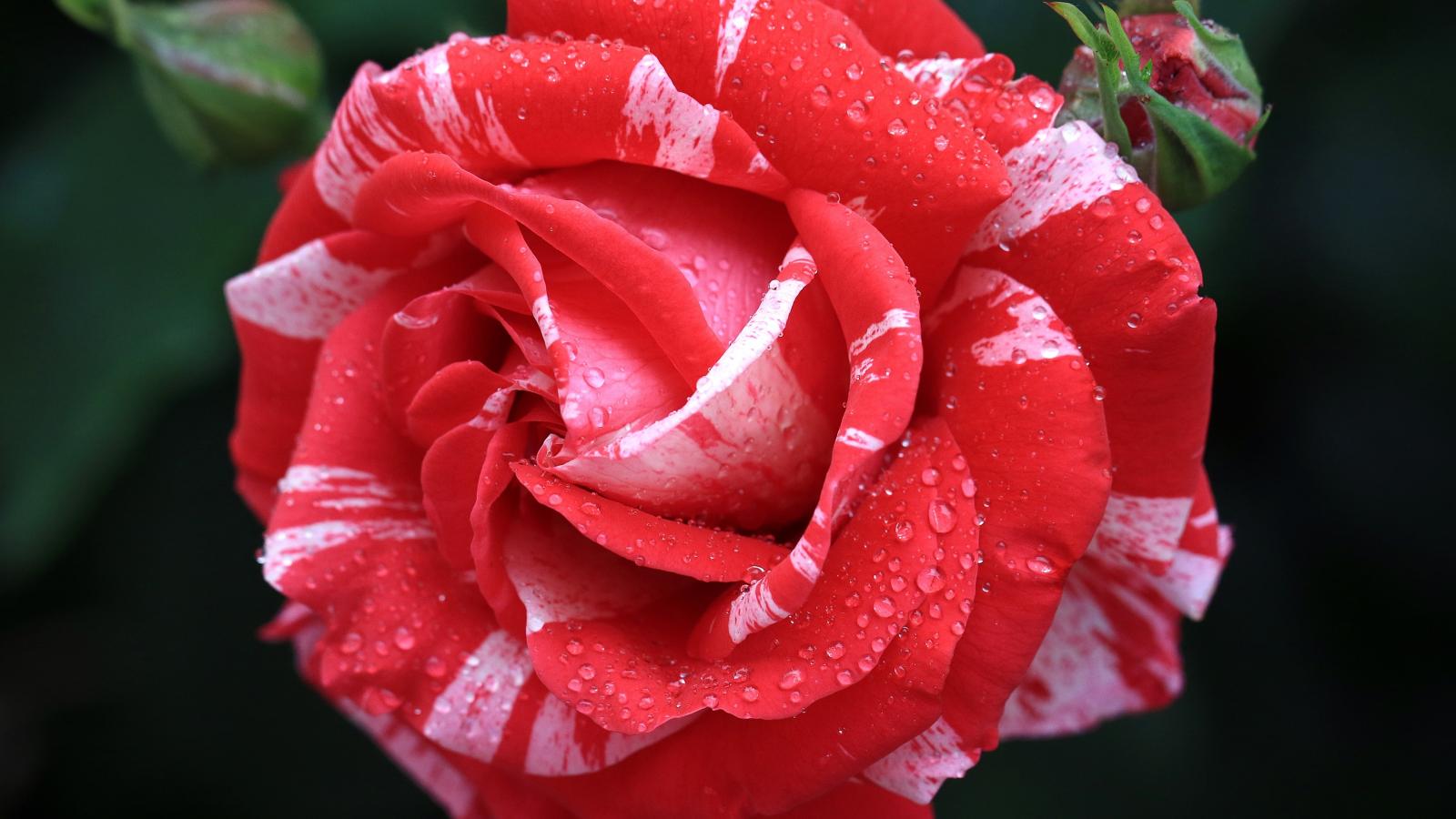Wallpaper Beautiful unusual rose with a bud in dew drops