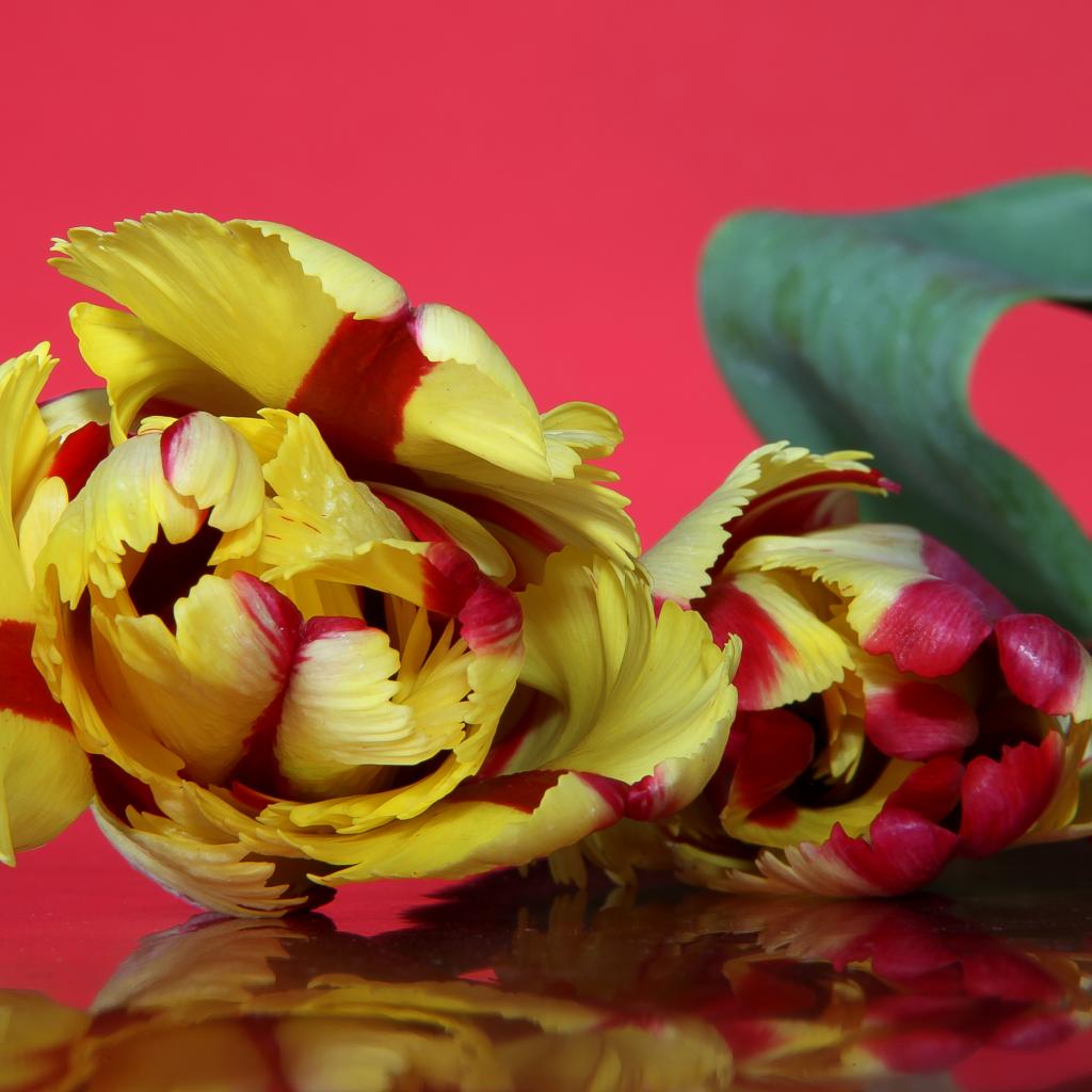 Wallpaper Beautiful yellow-red tulip on a pink background