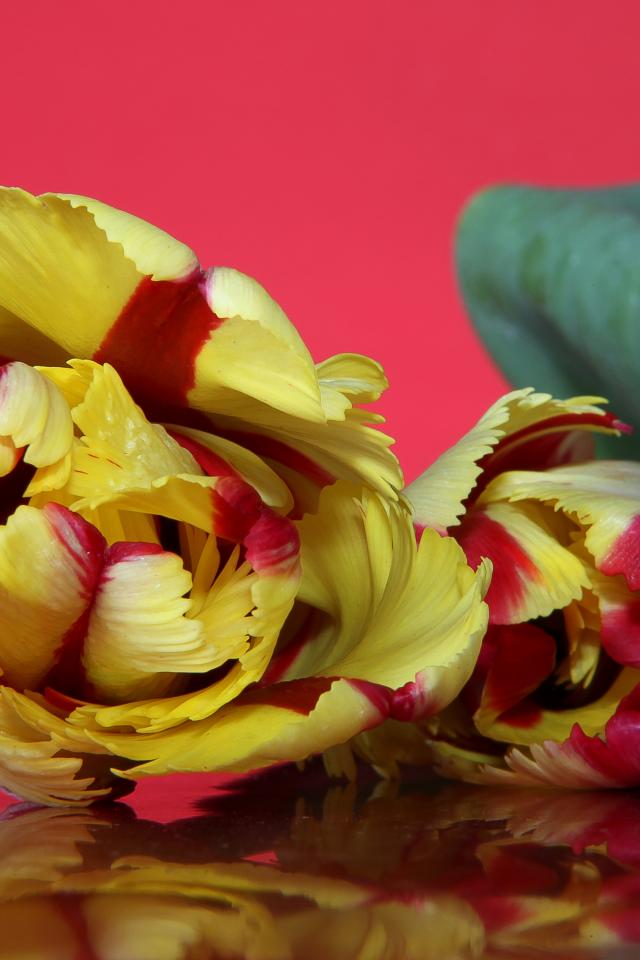 Wallpaper Beautiful yellow-red tulip on a pink background