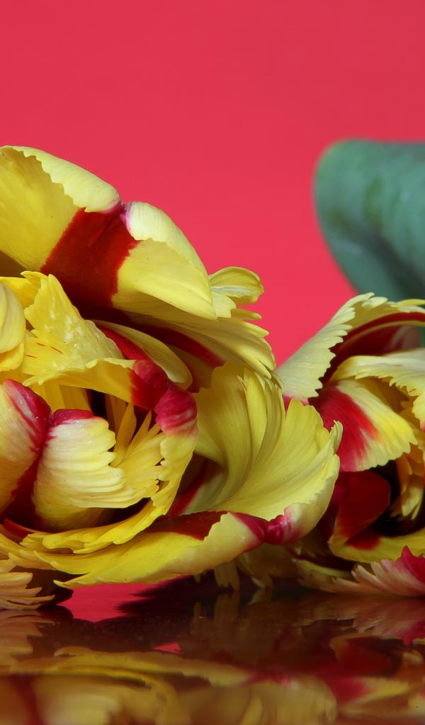 Wallpaper Beautiful yellow-red tulip on a pink background