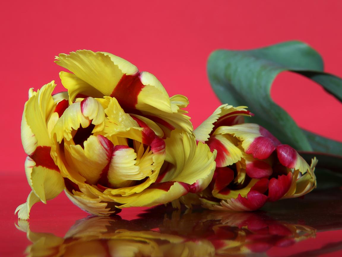 Wallpaper Beautiful yellow-red tulip on a pink background