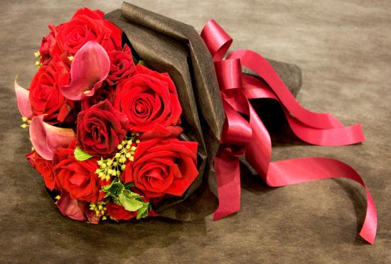 Wallpaper Beautiful bouquet of red roses with a red ribbon