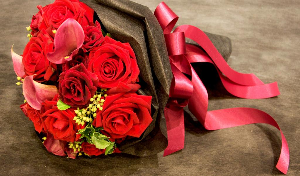 Wallpaper Beautiful bouquet of red roses with a red ribbon