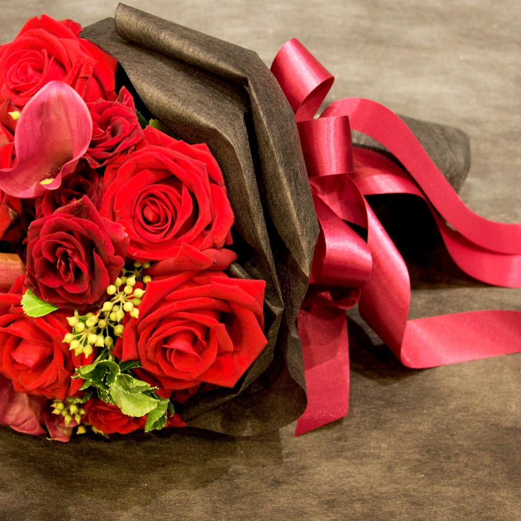 Wallpaper Beautiful bouquet of red roses with a red ribbon