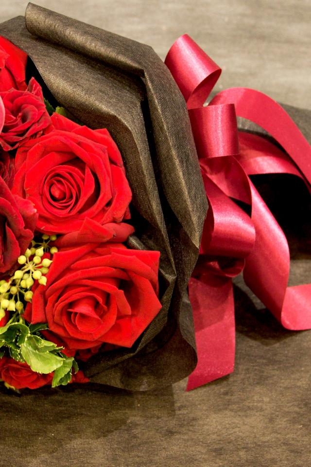 Wallpaper Beautiful bouquet of red roses with a red ribbon