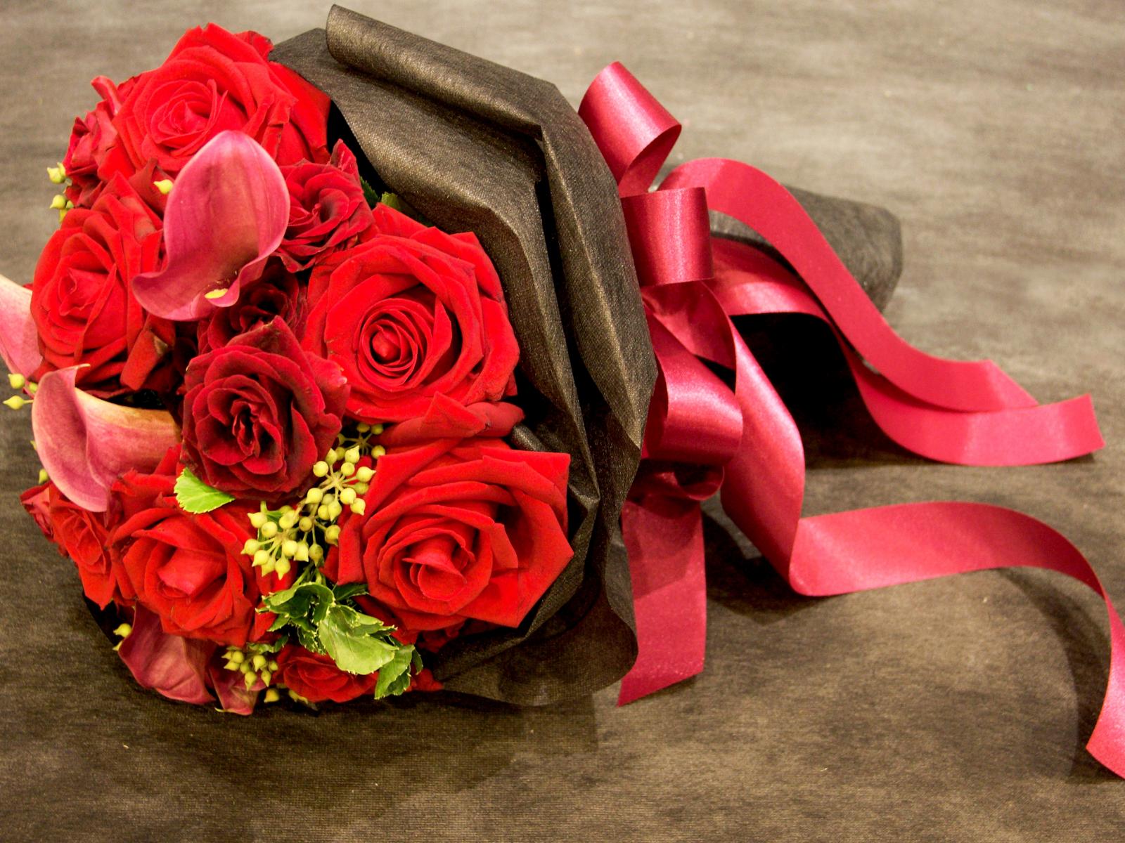 Wallpaper Beautiful bouquet of red roses with a red ribbon