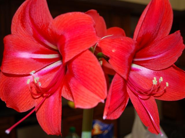Wallpaper Two red beautiful flowers of amaryllis on a black background