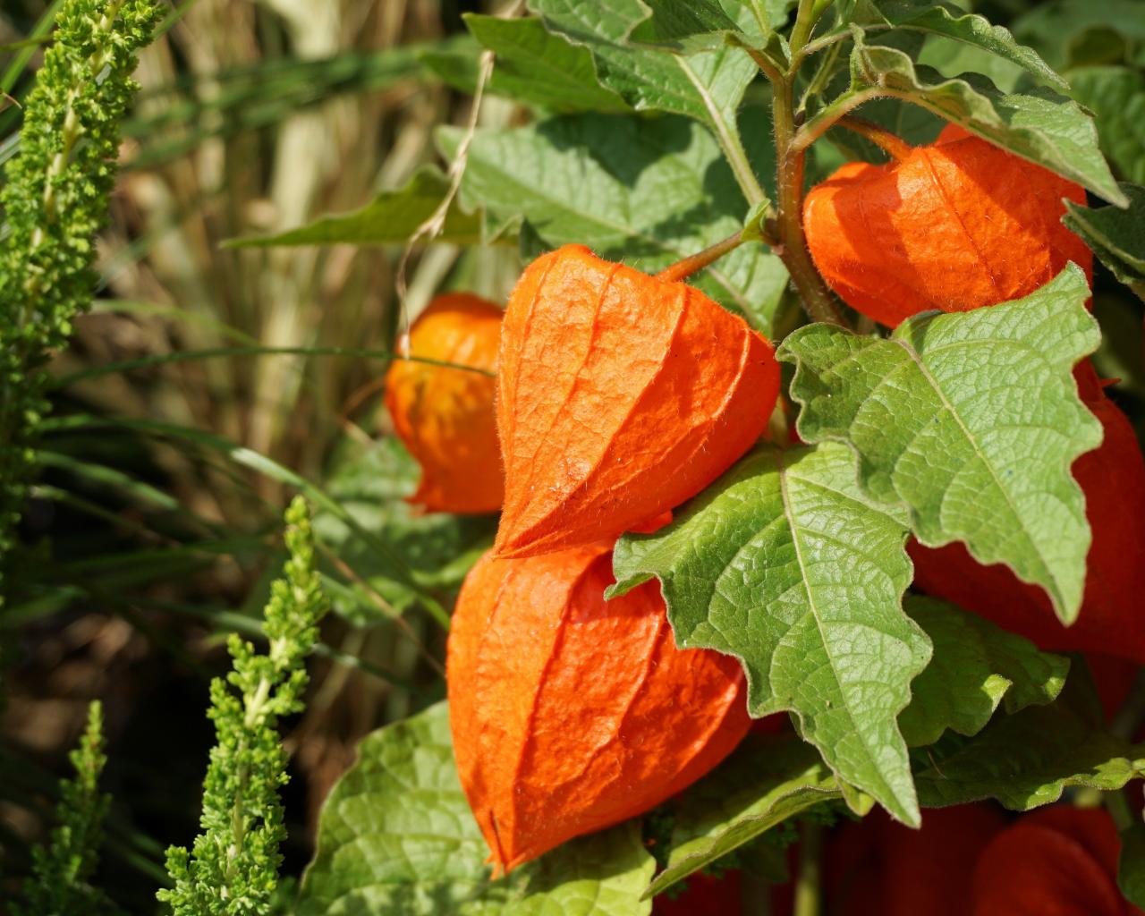 » Wallpaper Orange flowers physalis close-up