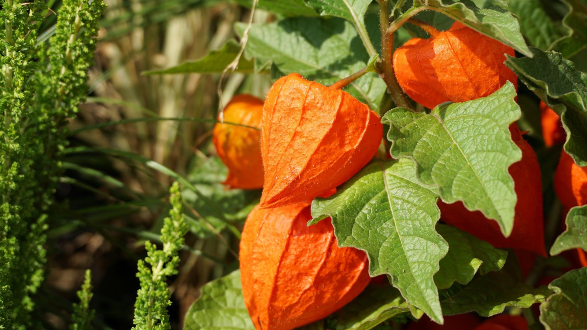 Wallpaper Orange flowers physalis close-up