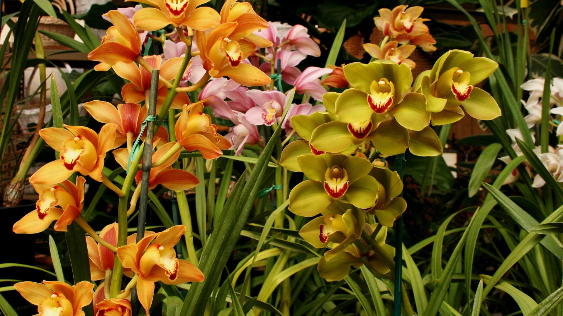 Wallpaper Multicolored orchids in a greenhouse