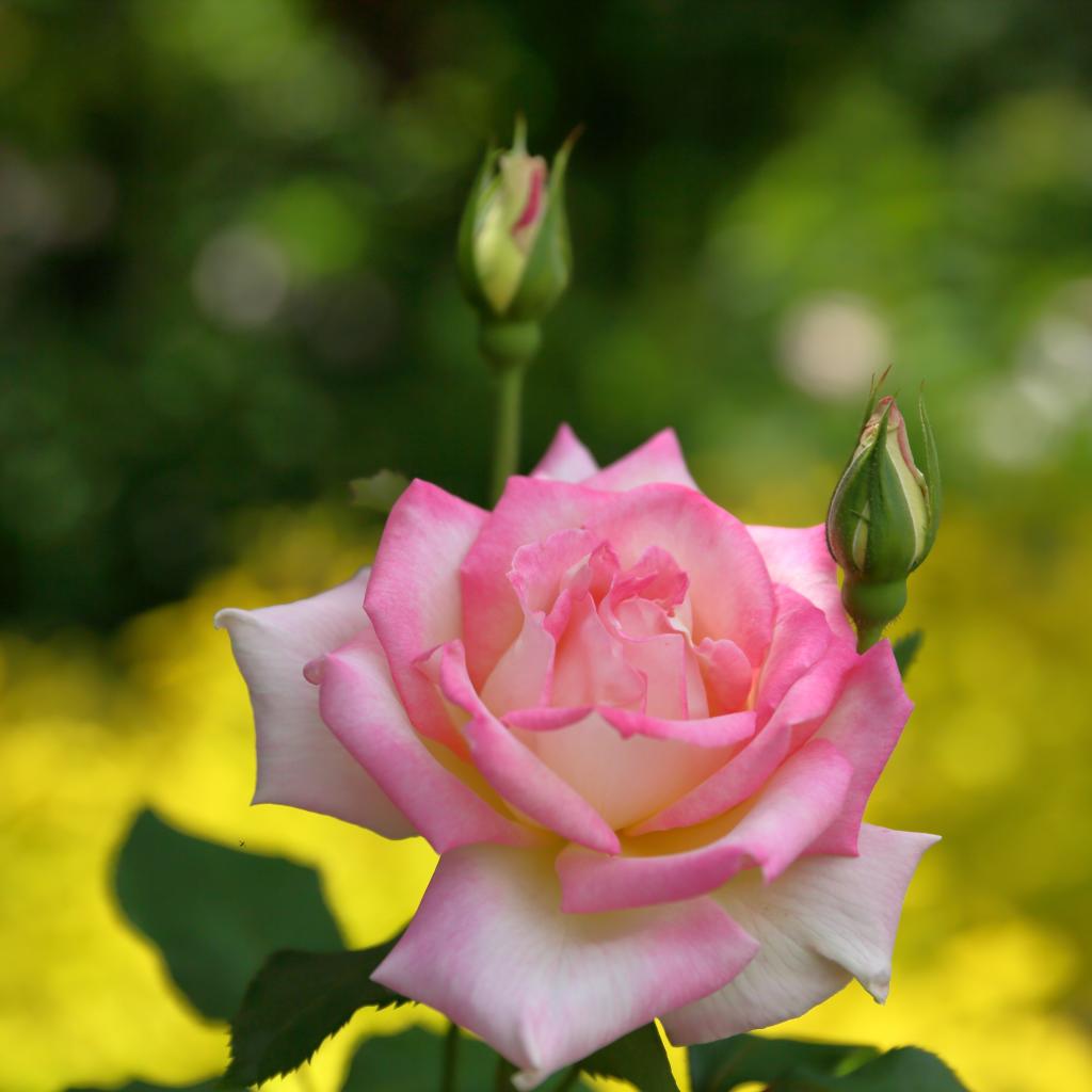 Wallpaper Beautiful multi-colored rose with buds close-up