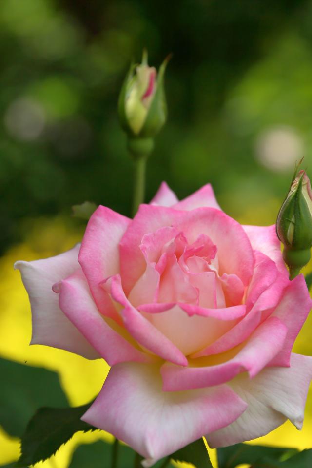 Wallpaper Beautiful multi-colored rose with buds close-up