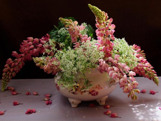 Wallpaper Pink lupine flowers with wildflowers in a vase