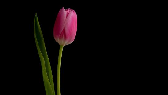 Wallpaper Pink gentle tulip on a black background