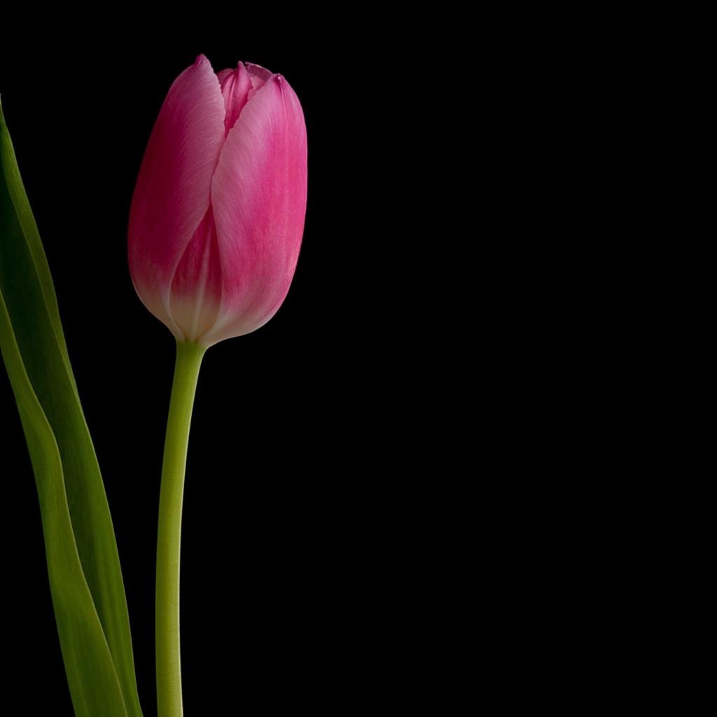 Wallpaper Pink gentle tulip on a black background