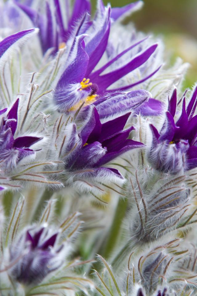 Wallpaper Violet flowers lumbago with buds close-up