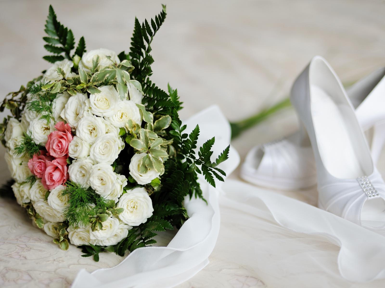 Wallpaper Wedding bouquet of roses with white shoes