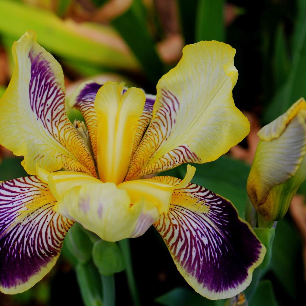 Wallpaper Beautiful white and pink iris in water drops on a flower bed