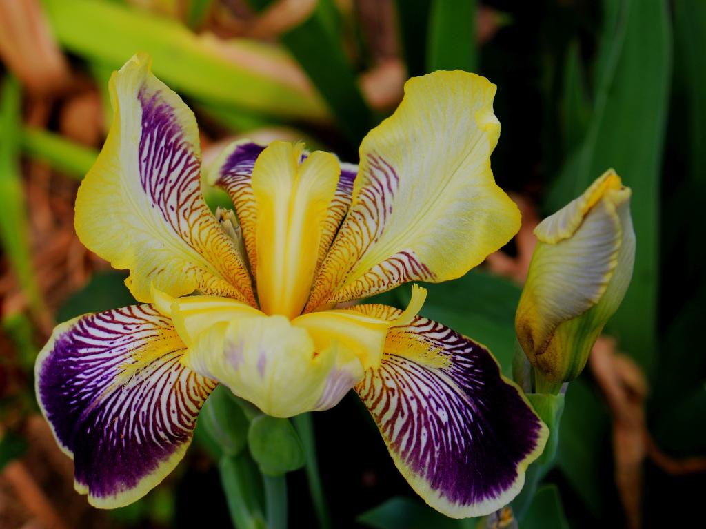 Wallpaper Beautiful white and pink iris in water drops on a flower bed