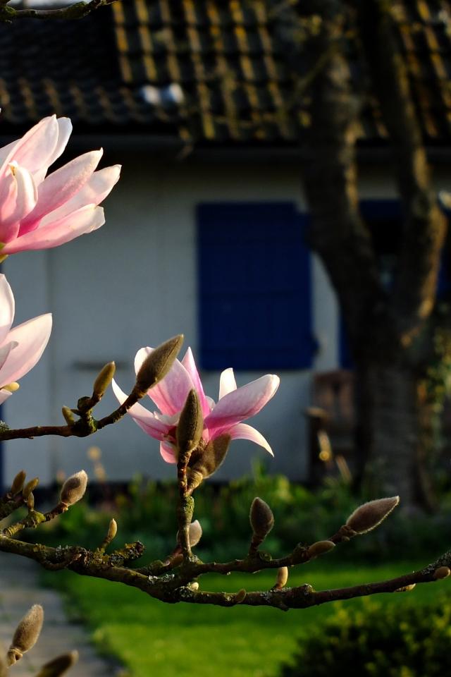 Wallpaper Flowering branch of a magnolia