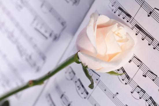Wallpaper Beautiful pink rose on violin notes