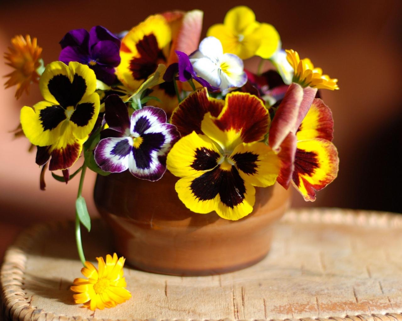 Wallpaper A bouquet of pansy flowers in a vase