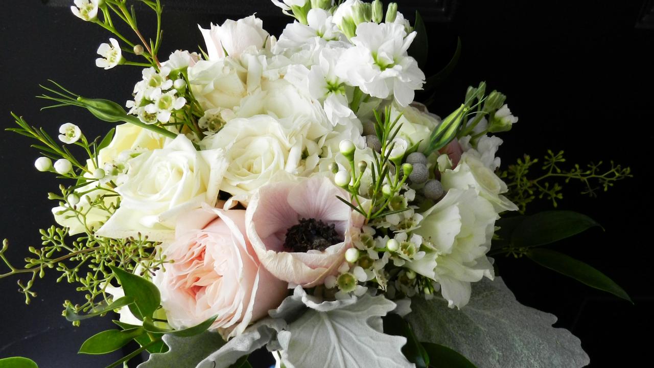 Wallpaper Bouquet with rose flowers, anemones and matthiols