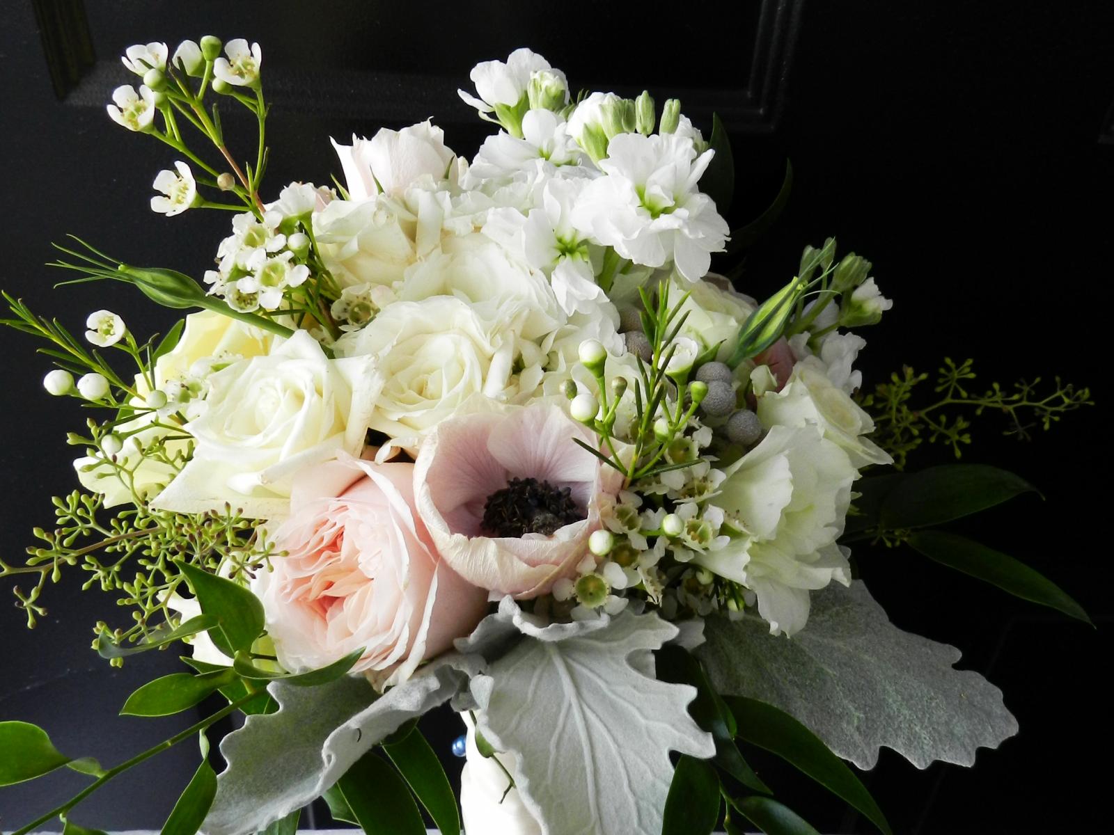 Wallpaper Bouquet with rose flowers, anemones and matthiols