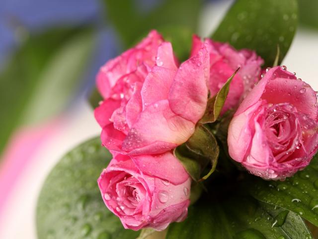 Wallpaper Bouquet of pink roses in drops of dew