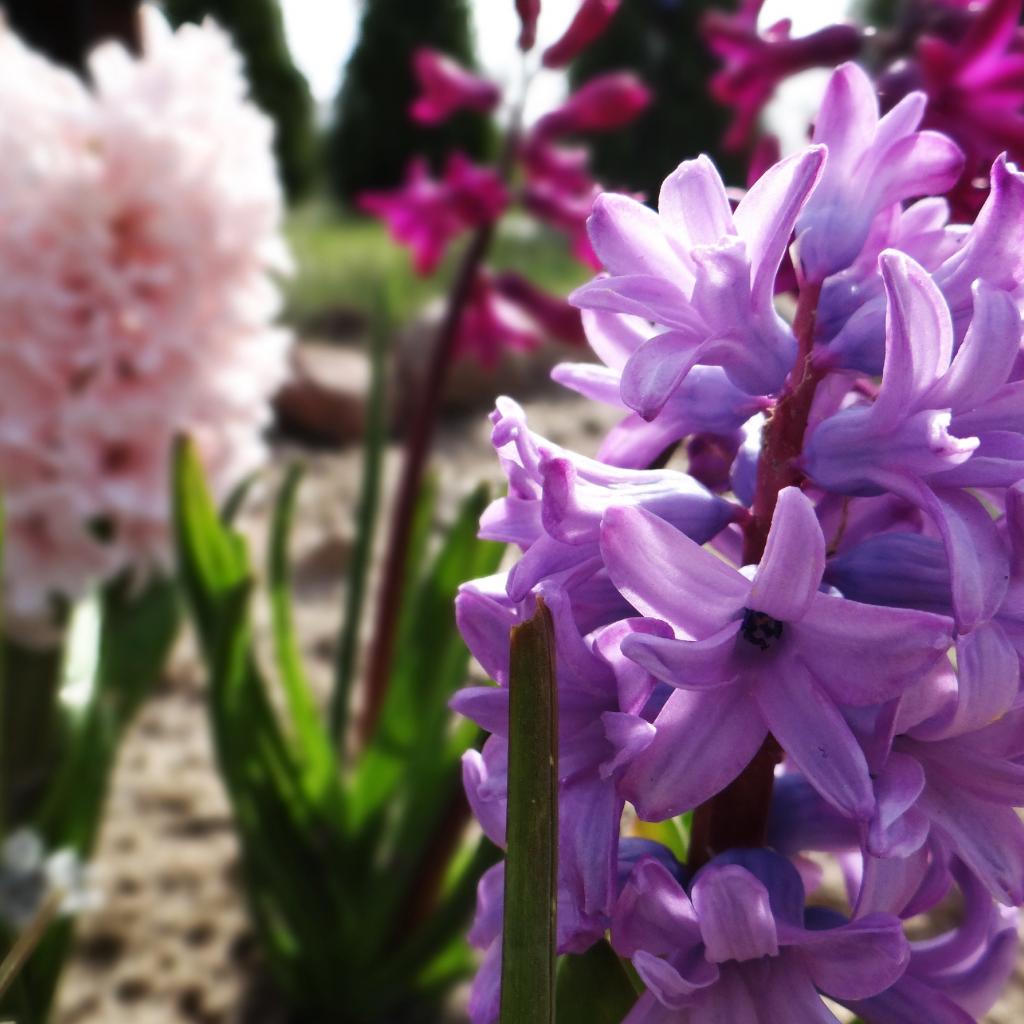 Wallpaper Flowerbed with spring hyacinth flowers under the spring sun