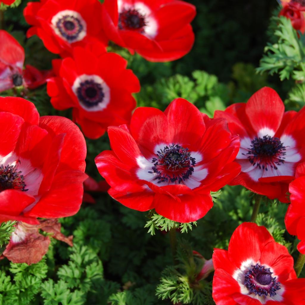 Wallpaper Beautiful flowers of anemone on a bed in the garden