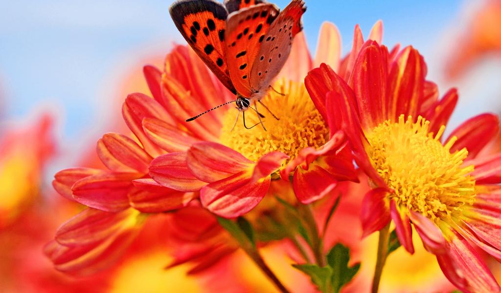 Wallpaper Orange flowers of dahlia with butterfly